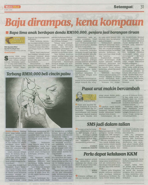 2609) HARIAN METRO – 6/3/16 – PUSAT URUT MAKIN BERCAMBAH