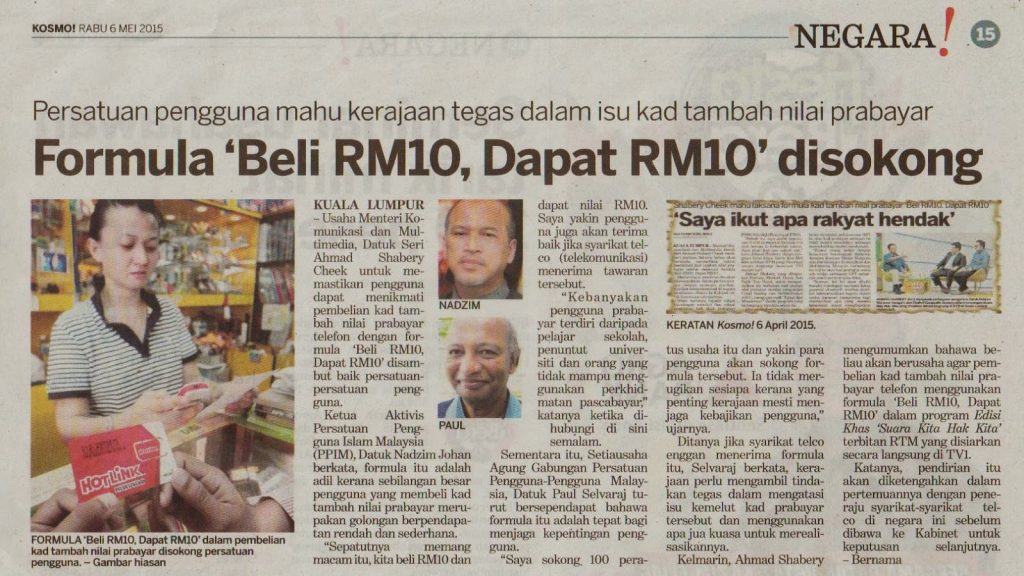 2617) KOSMO – 06/05/15 – Formula ‘Beli RM10, Dapat RM10’ Disokong