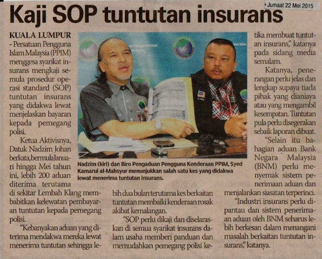 2670) SINAR HARIAN – 22/05/15 – Kaji SOP Tuntutan Insurans