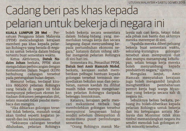 2673) UTUSAN – 30/05/15 – Cadang Beri Pas Khas Kepada Pelarian Untuk Bekerja di Negara Ini