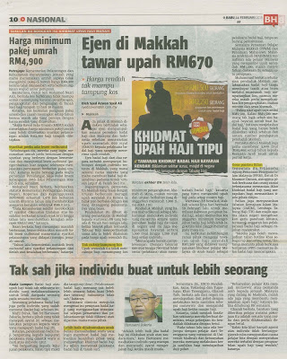 Ada pihak di Makkah didakwa mengumpulkan senarai pemohon upah haji dari Malaysia dan Indonesia sebelum menawarkan upah serendah 600 riyal (RM 670) kepada pelaksana upah haji yang sanggup menerima upah rendah
