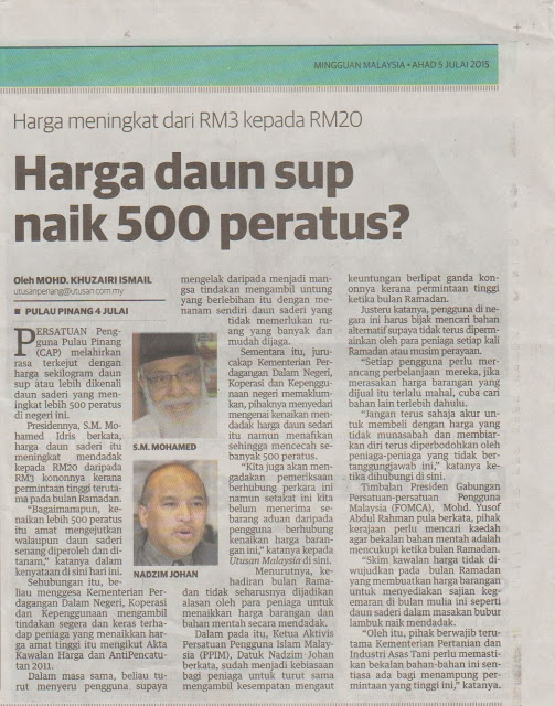 2740) MINGGUAN MALAYSIA – 5/7/2015 – HARGA DAUN SUP NAIK 500 PERATUS?