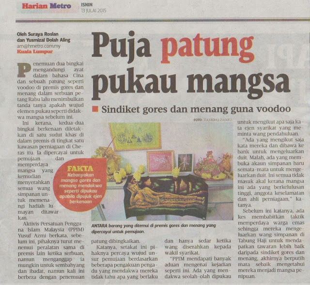 2757) HARIAN METRO – 13/7/2015 – PUJA PATUNG PUKAU MANGSA
