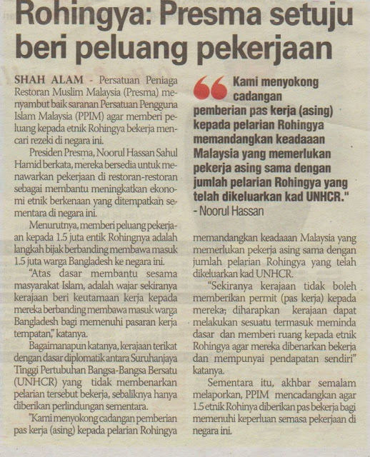 2770) SINAR HARIAN – 1/7/2015 – ROHINGYA: PRESMA SETUJU BERI PELUANG PEKERJAAN