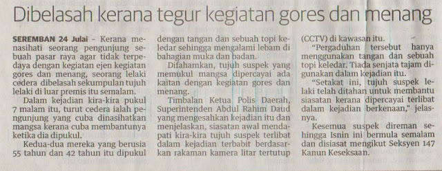 2776) UTUSAN MALAYSIA – 25/7/2015 – DIBELASAH KERANA TEGUR KEGIATAN GORES DAN MENANG