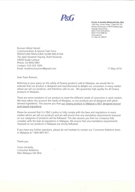 2800) PENJELASAN DARI P&G BERKENAAN PRODUK DOWNY