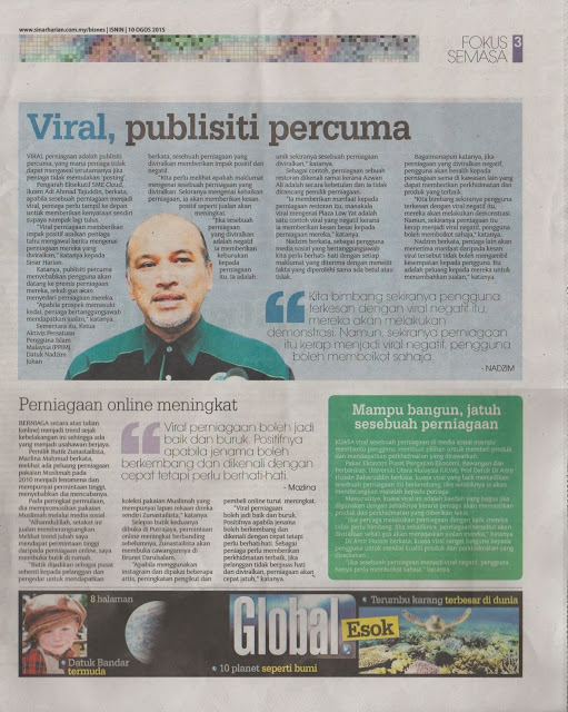 2810) SINAR HARIAN – 10/08/15 – VIRAL, PUBLISITI PERCUMA