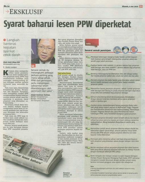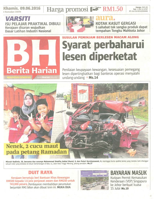 2816) SUSULAN PEMINJAM BERLESEN MACAM AH LONG – BERITA HARIAN – 9/6/16