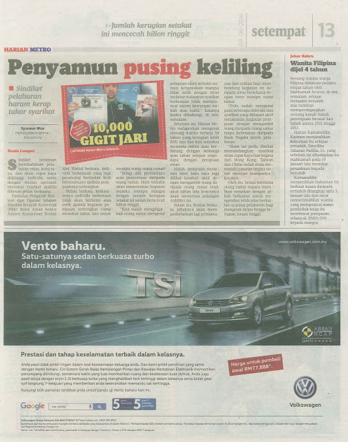 2817) SINDIKET PELABURAN HARAM KERAP TUKAR SYARIKAT – HARIAN METRO – 6/9/16