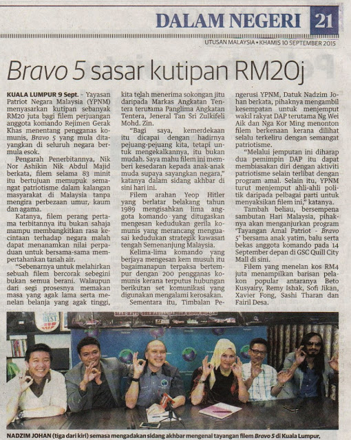 2829) UTUSAN – 10/9/2015 – BRAVO 5 SASAR KUTIPAN RM20 JUTA