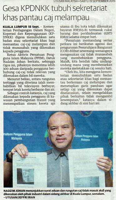 2849) UTUSAN – 19/9/2015 – GESA KPDNKK TUBUH SEKRETARIAT KHAS PANTAU CAJ MELAMPAU