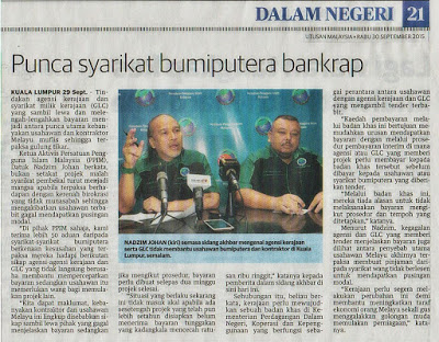 2862) KERATAN AKHBAR – 30/9/2015 – SEGERAKAN BAYARAN UNTUK ELAK LEBIH RAMAI USAHAWAN BUMIPUTERA BANKRAP