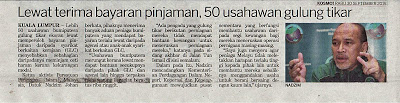 KOSMO – RABU, 30 SEPTEMBER 2015 – LEWAT TERIMA ABAYARAN PINJAMAN, 50 USAHAWAN GULUNG TIKAR