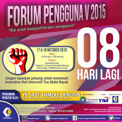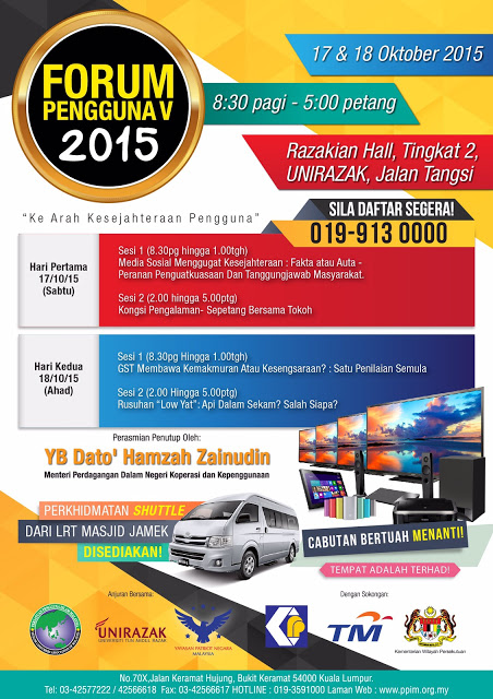 Beliau bercakap demikian dalam sidang akhbar Forum Pengguna 2015 anjuran PPIM, Universiti Tun Abdul Razak (Unirazak) dan Yayasan Patriot Negara yang akan berlangsung pada 17 dan 18 Oktober ini.