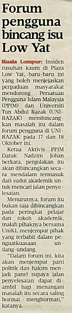 2877) HARIAN METRO – 7/10/2015 – FORUM PENGGUNA BINCANG ISU LOW YAT