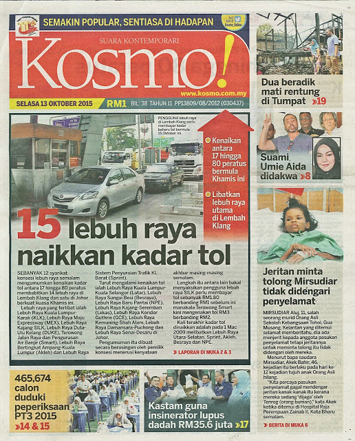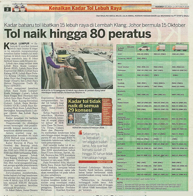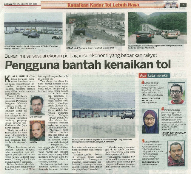 2887) KOSMO – 13/7/2015 – PENGGUNA BANTAH KENAIKAN TOL, BUKAN MASA YANG SESUAI