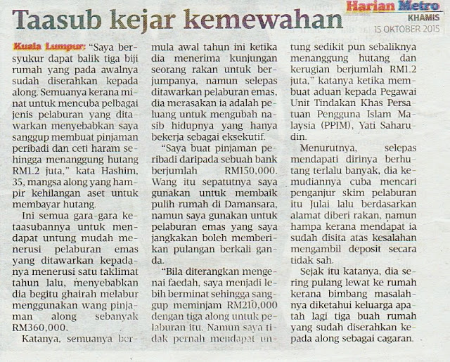 2890) HARIAN METRO – 15/10/2015 – GORES DAN MENANG: TAASUB KEJAR KEMEWAHAN