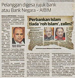 2909) UTUSAN – 26/10/2015 – PELANGGAN DIGESA RUJUK BANK ATAU BANK NEGARA – AIBIM