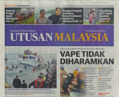2921) UTUSAN MALAYSIA, 31/10/15 – ROKOK ELETRIK TIDAK DIHARAMKAN