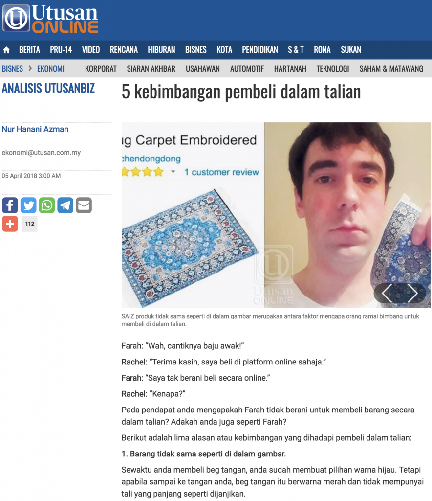 Tahukah anda, sepanjang 2017 sahaja, sebanyak 1,428 aduan berhubung penipuan urusniaga dalam talian diterima Kementerian Perdagangan Dalam Negeri, Koperasi dan Kepenggunaan (KPDNKK). Kes paling popular adalah pengguna membeli barang lain, yang diterima pula barang lain. Contohnya pernah ada kes beli telefon dan yang sampai adalah lesung batu.