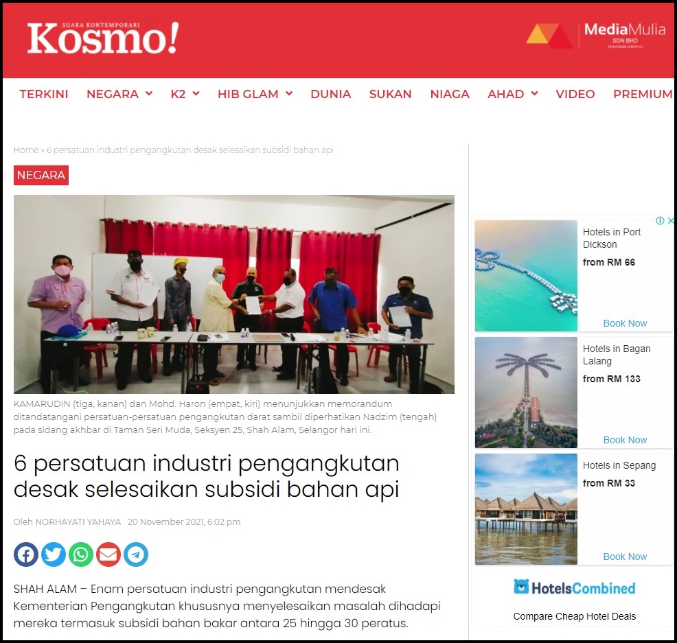 6 PERSATUAN INDUSTRI PENGANGKUTAN DESAK SELESAIKAN SUBSIDI BAHAN API