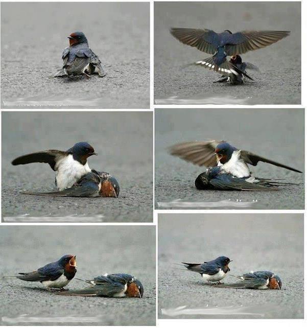 He tried to move her….a rarely-seen effort for swallows.