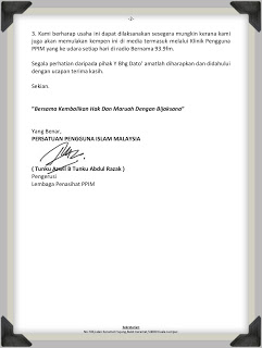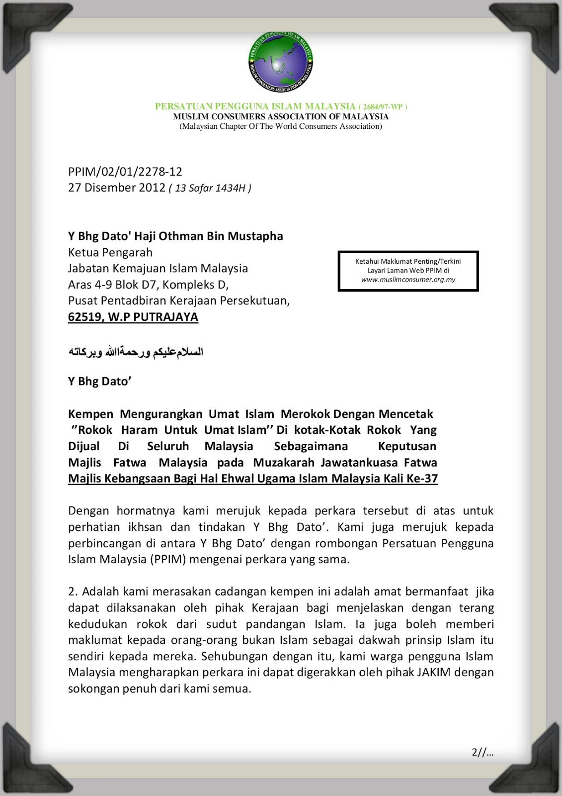 surat sokongan kepada JAKIM untuk menyokong kempen ini.