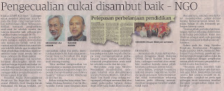 870) UTUSAN MALAYSIA 21/8/13 :PENGECUALIAN CUKAI DISAMBUT BAIK-NGO