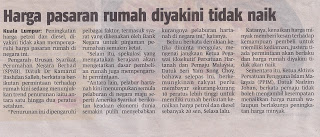 893) BERITA HARIAN 6/9/13:HARGA PASARAN RUMAH DIYAKINI TIDAK NAIK