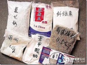 Fake egg was made from calcium carbonate, starch, resin, gelatin, alum and other chemical products.