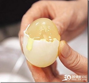 In the mold into 1 / 3 raw egg white, like the first package, like dumplings into the egg yolk, egg white into another, into the magic water, a shell eggs will come slowly. Naked egg shape to 1 hour to dry after washing with water, at shells ready.