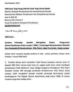 “ Saya mewakili Persatuan Penduduk Villa Putra dan Villa Putri ingin berkongsi kesengsaraan disebabkan kelembapan agensi-agensi berkaitan gagal melaksanakan tugas mereka dengan berkhemah. Kegagalan ini telah menyebakan orang ramai hilang keyakinan kepada pihak berkuasa dan kerajaan yang nampaknya cakap tak serupa bikin. Nampaknya slogan Rakyat Diutamakan tidak lagi menjadi dasar nampaknya.”
