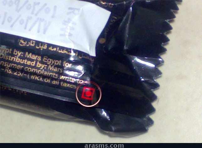 Be aware of the Red dot insid…e a red square symbol which shown on chocolate bars like : Bounty Chocolate bar / Mars/ sneakers … it’s shown specifically at the back beside the weight numbers.