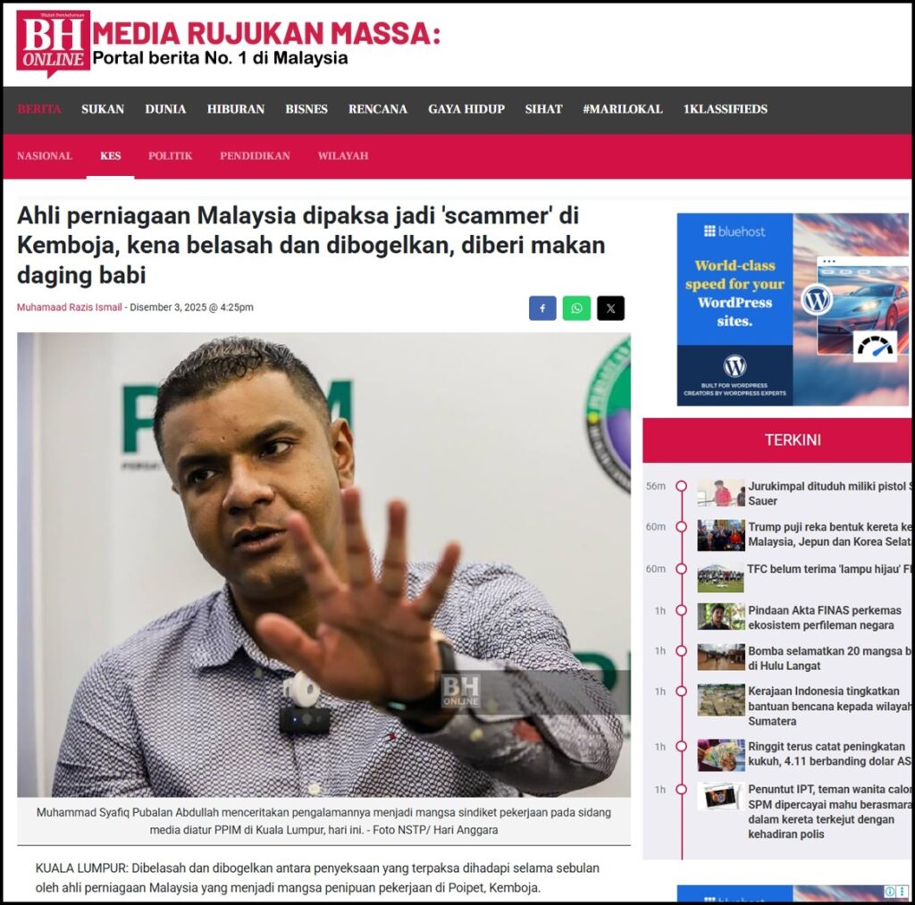 AHLI PERNIAGAAN MALAYSIA DIPAKSA JADI ‘SCAMMER’ DI KEMBOJA, KENA BELASAH DAN DIBOGELKAN, DIBERI MAKAN DAGING BABI
