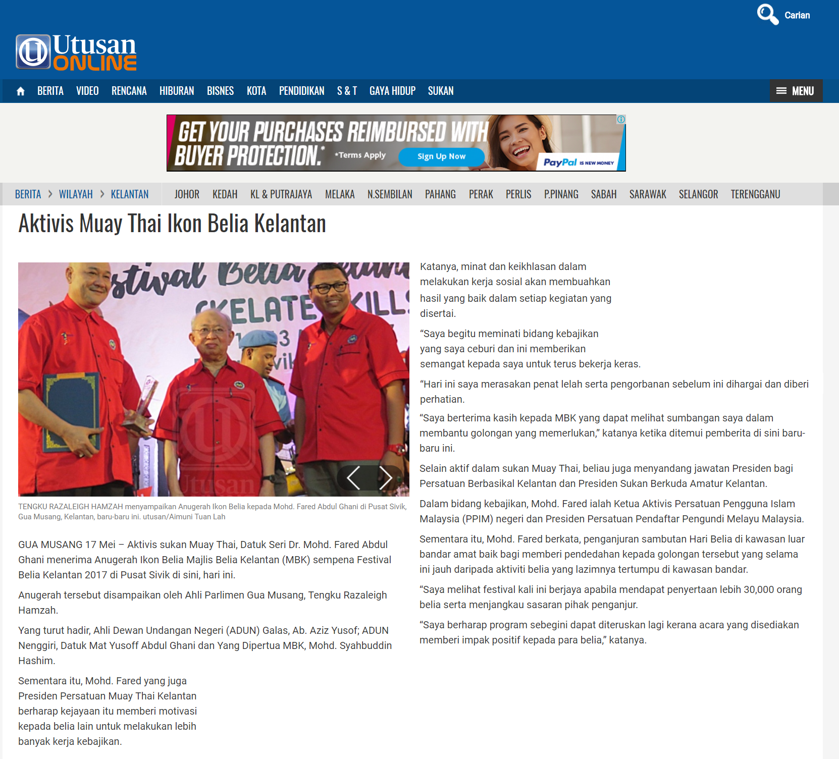 Sementara itu, Mohd. Fared yang juga Presiden Persatuan Muay Thai Kelantan berharap kejayaan itu memberi motivasi kepada belia lain untuk melakukan lebih banyak kerja kebajikan.
