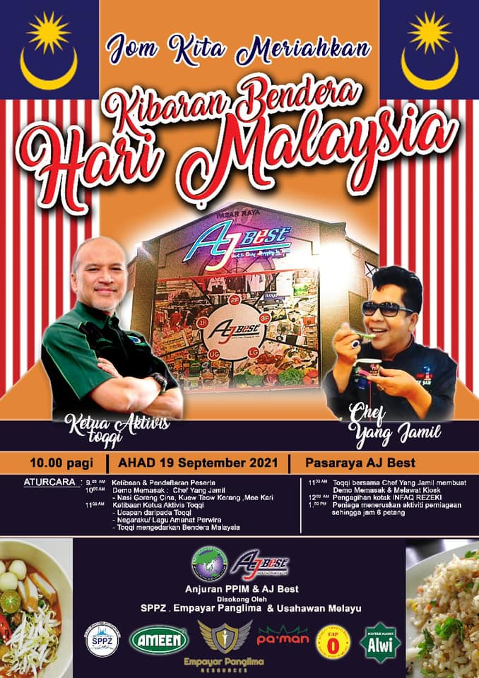 Telah berlangsungnya, Program Kibaran Bendera Hari Malaysia anjuran PPIM dan AJ Best di Pasaraya AJ Best, Jalan Chow Kit, semalam.