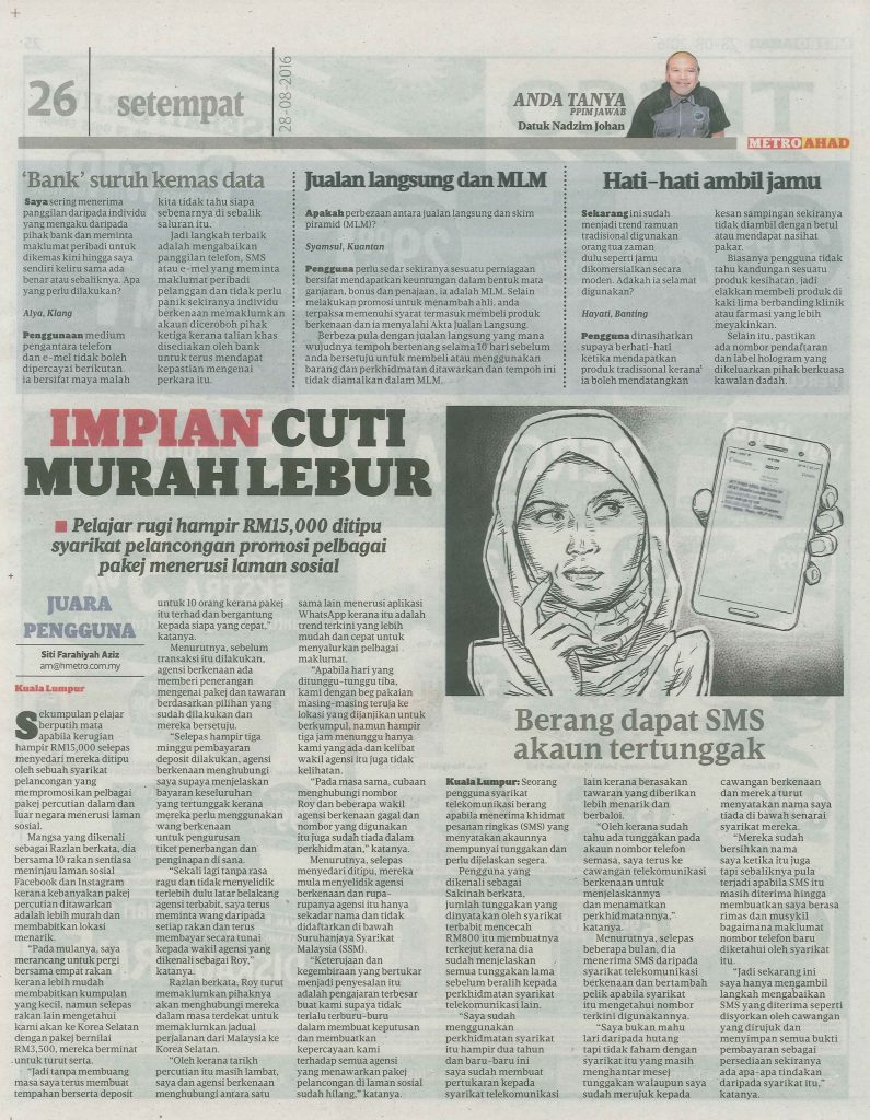ANDA TANYA PPIM JAWAB – HARIAN METRO – 28/9/16