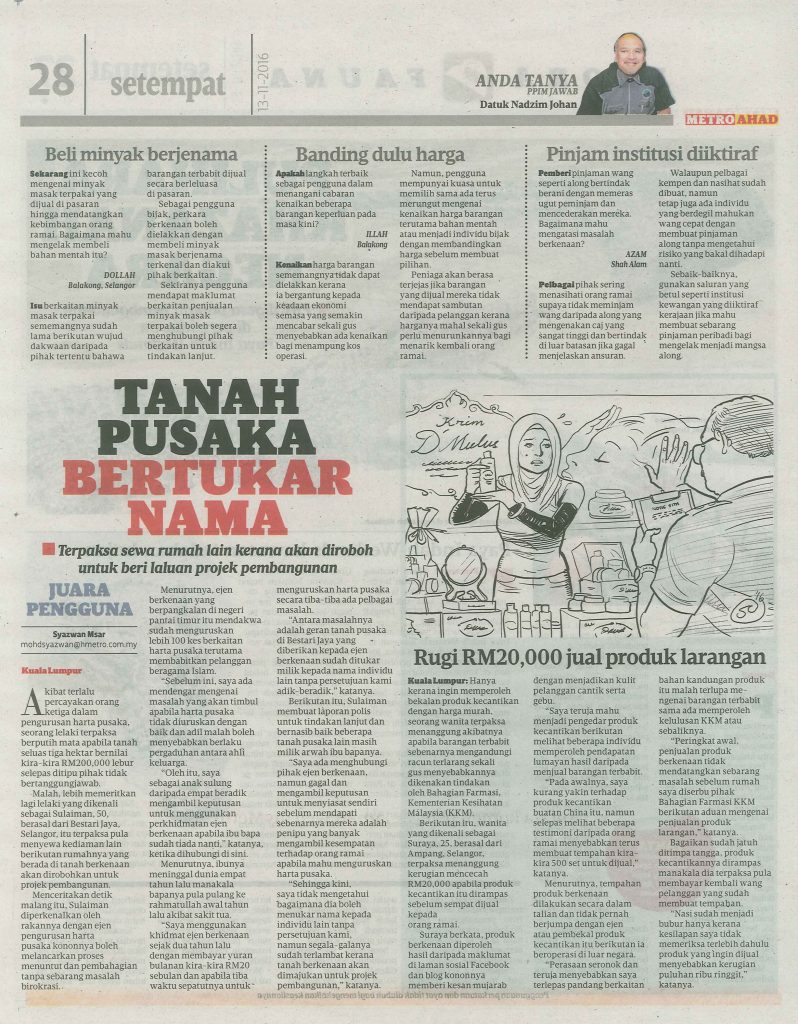 ANDA TANYA PPIM JAWAB – METRO AHAD – 13/11/2016
