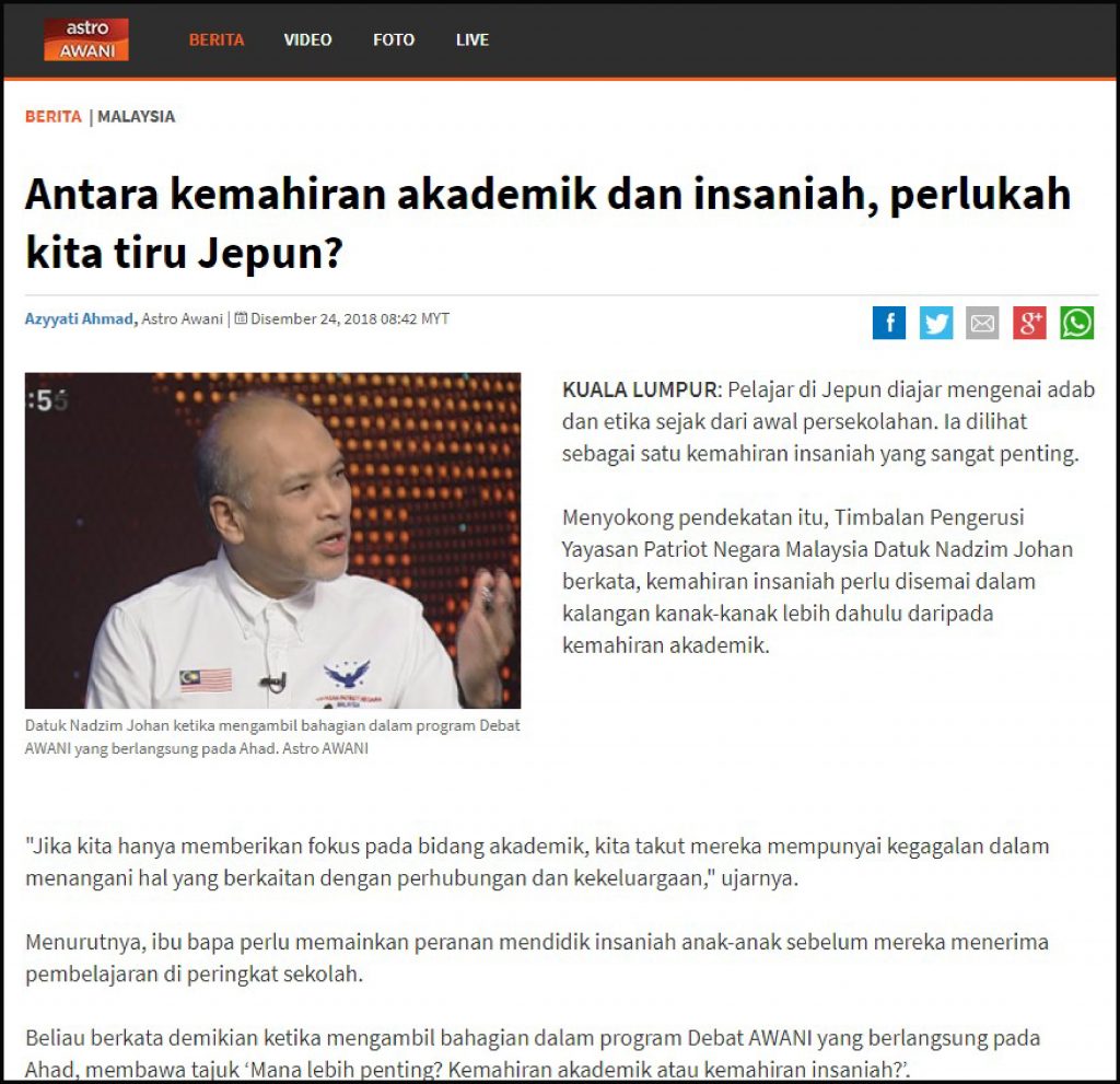 ANTARTA KEMAHIRAN AKADEMIK DAN INSANIAH, PERLUKAH KITA TIRU JEPUN ?