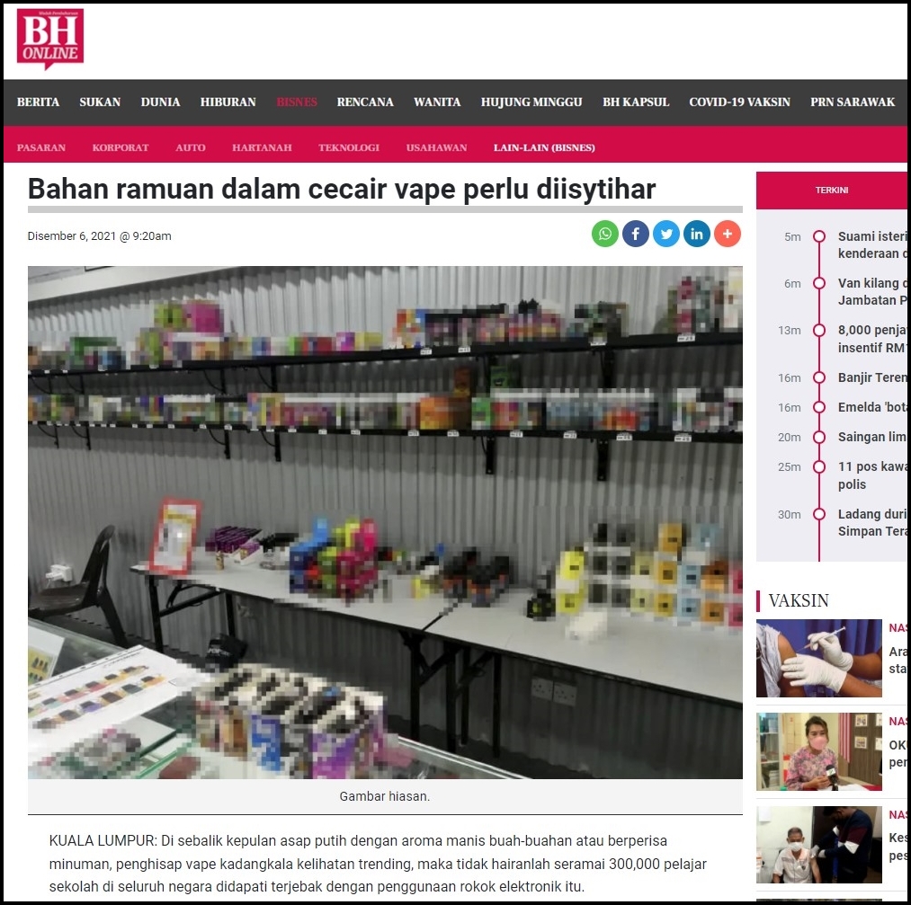 Setiausaha Kerja Persatuan Pengguna Islam Malaysia (PPIM), Datuk Nadizm Johan ketika dihubungi berkata, kerajaan berani mengambil langkah berani dengan mengumumkan cukai untuk cecair vape dalam Bajet 2022 bermula 1 Januari depan.