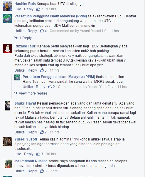“Kenapa begitu sukar untuk pihak UDA Mall bertolak ansur atau bertimbang rasa terhadap peniaga, sukarkah menyelami masalah yang dihadapi oleh mereka. Selain menghabiskan berjuta untuk pengubahsuian. Pihak UDA Mall turut gagal menguruskan Pudu Sentral dengan baik.
