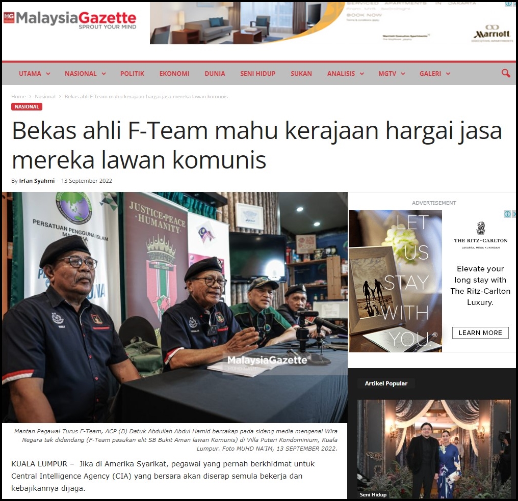 BEKAS AHLI F-TEAM MAHU KERAJAAN HARGAI JASA MEREKA LAWAN KOMUNIS