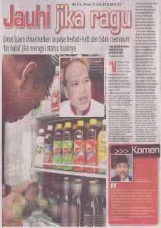 “Kami tidak mahu ia menyerupai sesuatu yang tidak halal dan yang kita takut sekali ialah proses pemeraman dilakukan ketika pembuatan minuman berkenaan dikhuatiri boleh menghasilkan alkohol yang melebihi tahap dibenarkan tetapi tiada ujian yang dilakukan bagi mengesan kewujudannya,” katanya.