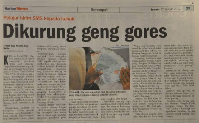 Sumber Berita : HARIAN METRO JUMAAT 20/01/2012 m/s : 25A