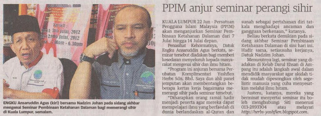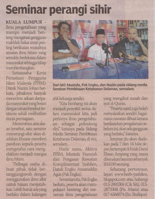 “Program ini anjuran bersama Perubatan Komplimentari Yashfien Herbs Sdn. Bhd. Saya dan ahli panel jemputan akan membentangkan beberapa kertas kerja bagaimana memerangi sihir pada seminar tersebut.