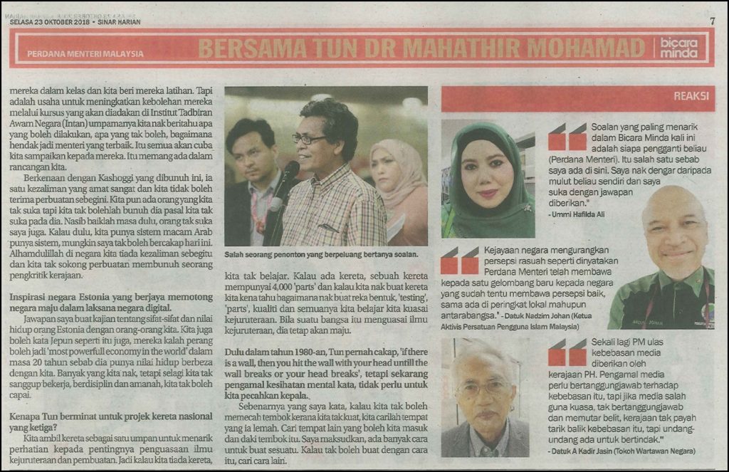 Kerajaan negara mengurangkan persepsi rasuah seperti dinyatakan Perdana Menteri telah membawa kepada satu gelombang baru kepada negara yang sudah tentu membawa persepsi baik, sama ada di peringkat lokal mahupun antarabangsa.”