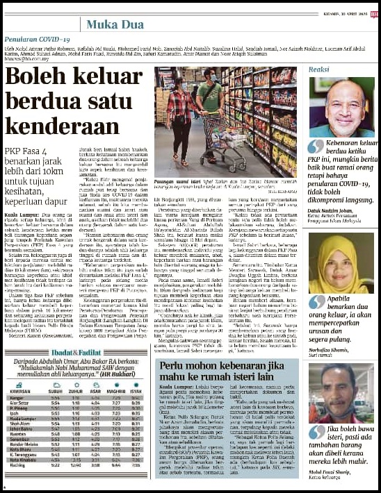 BOLEH KELUAR BERDUA SATU KENDERAAN – BERITA HARIAN – 30/04/2020