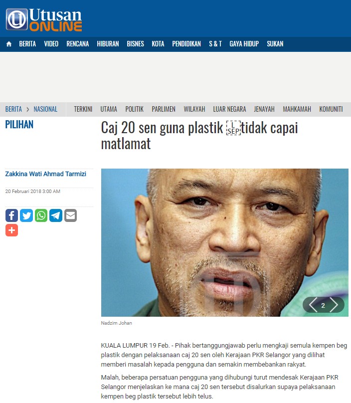 “Dasar yang diperkenalkan itu tidak membantu ke arah usaha pemuliharaan alam sekitar malah ia dilihat semakin membebankan pengguna. Apabila mengenakan caj 20 sen tindakan itu langsung tidak memberi kesan sepenuhnya kepada alam sektar kerana beg plastik tergolong ‘barang sekali pakai’ sehingga memperbanyakkan sampah.
