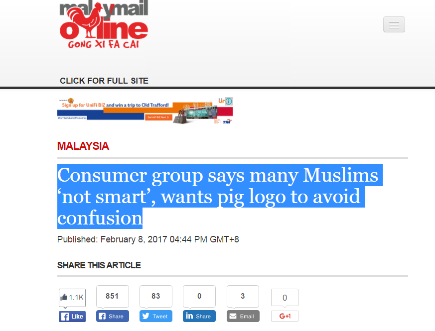 “Many Muslim consumers are not smart. If I say they are stupid, it will agitate people, but they are not that smart.
