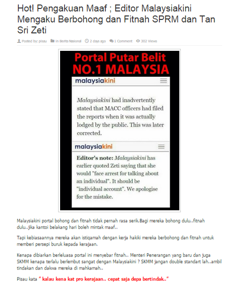 Oleh itu, netizen perlu berhati-hati dan bertindak matang sebelum mempercayai setiap berita yang dilaporkan terutama melalui Malaysiakini.